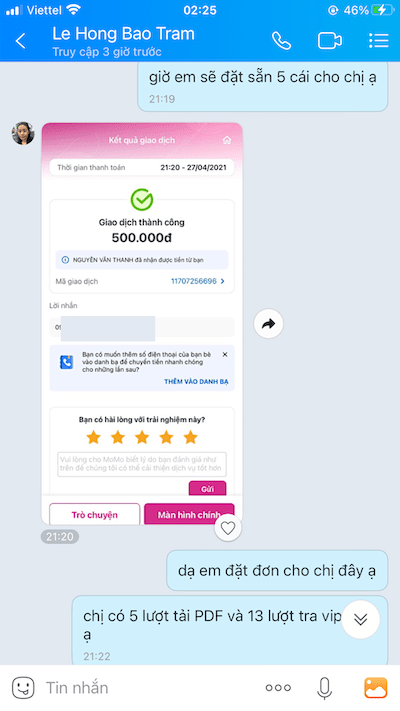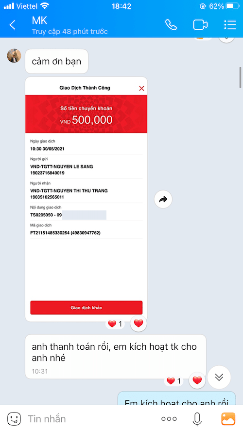 Sau khi thanh toán thành công bạn có thể liên hệ tới Hotline: 0962984269để được kích hoạt ngay!
