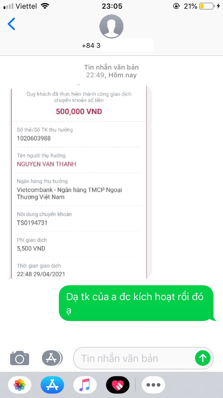 * NỘI DUNG CHUYỂN KHOẢN: số điện thoại của bạn